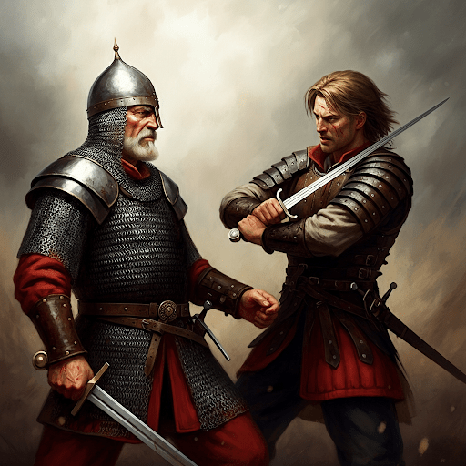 The duel was a disappointment. Catwright the third advanced cautiously, testing his father’s defenses, not willing to underestimate his opponent again. However after his second basic sequence, he switched to a one handed grip and increased his pace wondering if the soldier was baiting him with fake fatigue or some other ploy. The blocks were weak and slow. The old man almost dropped his sword blocking an obvious feint. In his third round of combinations the boy left several openings pass by without taking advantage as his father was improbably slow getting his saber back into position. His father went on the attack as expected and his son blocked the feeble blows without even needing to adopt a standard defense. Had he improved so much that his father was no longer a challenge? At this point it was obvious that the soldier was not pretending. Was he injured? Did he have some age related ailment? Should he have been given time to rest properly before being presented a challenge? All of these thoughts went through the son’s mind as he riposted his father’s flagging attack and sent him staggering back. ‘It doesn’t matter,’ the boy decided, ‘I need to finish what I started’.